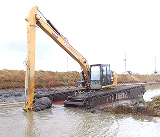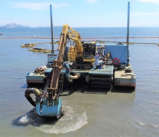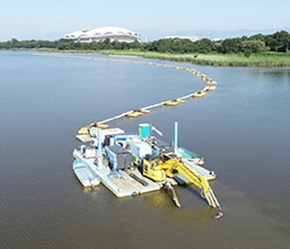 海や湖や河川の底面に堆積した土砂を除去する作業です。